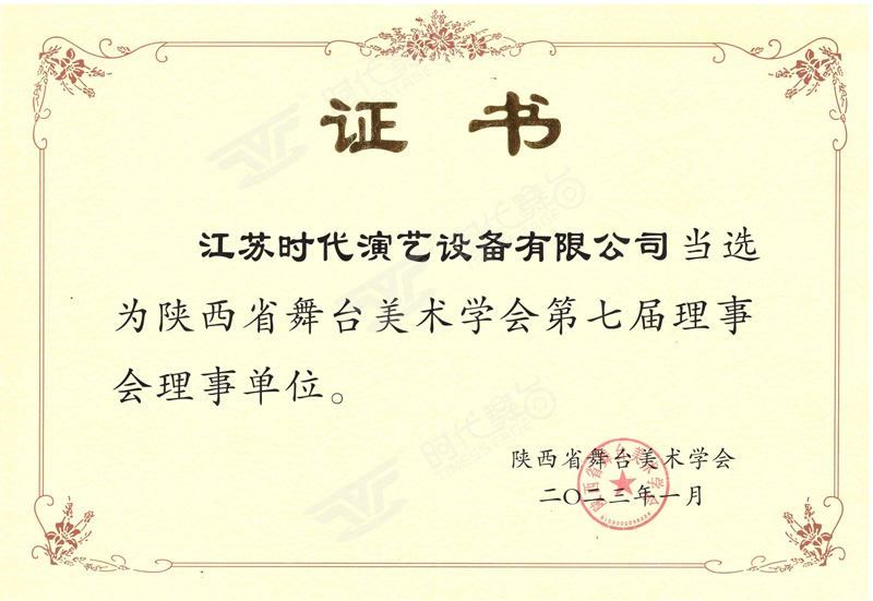 陜西省舞臺美術協(xié)會理事單位證書